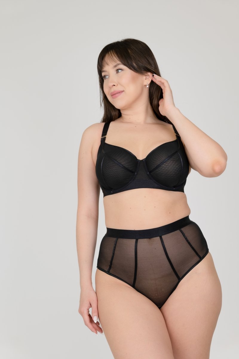 Tags: Closure Height - 3 Rows of Hooks and Eyes, Deep Full-Cup, Mesh, Powernet corset belt, Shaping T-Seams, Soft Cup, U-Back